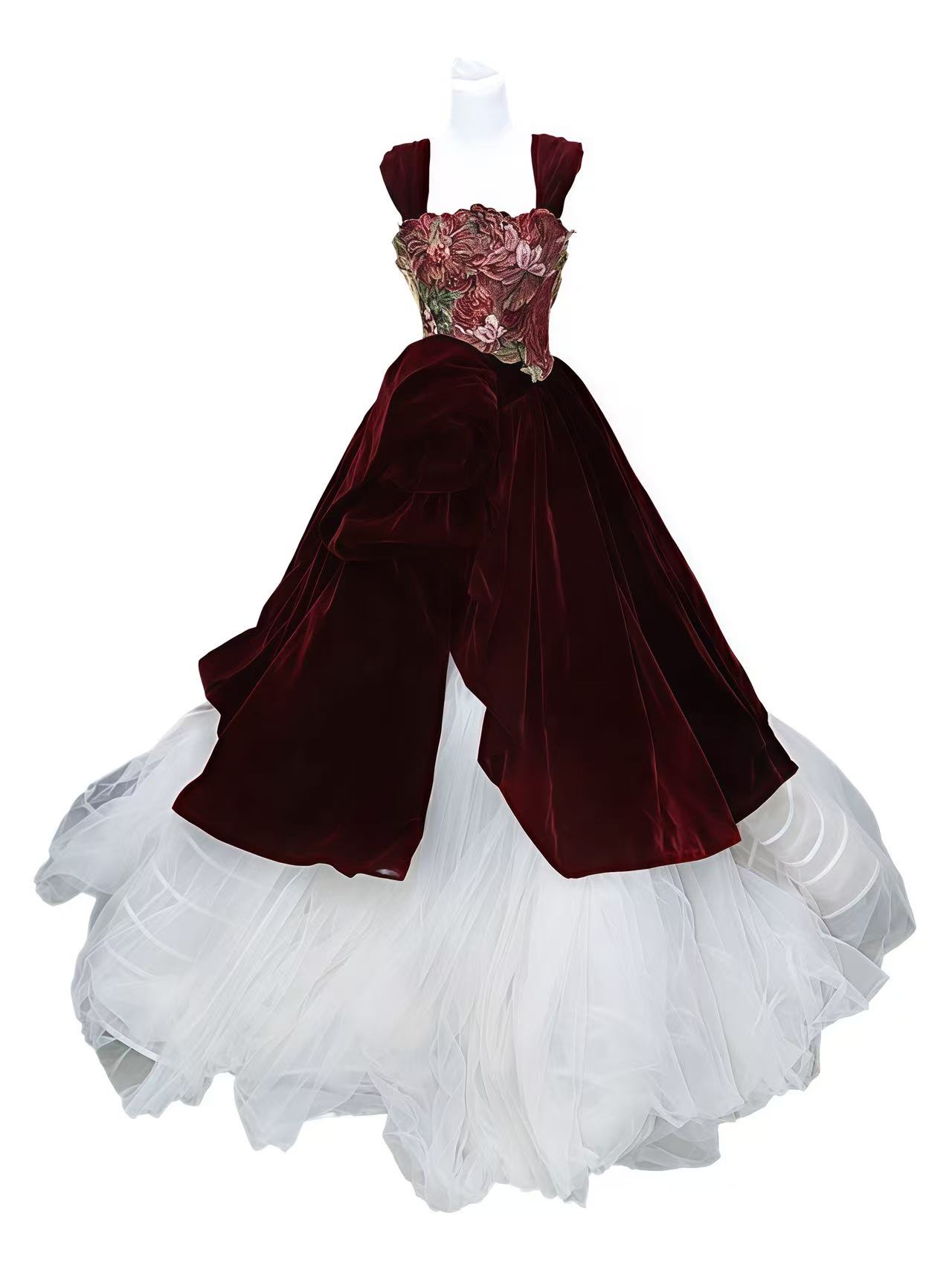 Step into regal sophistication with this stunning red vintage court-style gown. Crafted from luxurious velvet, it features a dramatic full skirt and classic design details inspired by historic royal fashion. This dress exudes timeless elegance and grandeur, perfect for formal galas, themed events, or making a majestic statement at any special occasion.